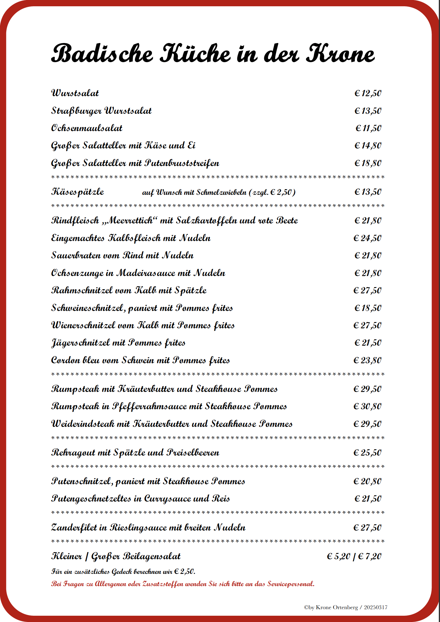 Hauptstraße 28, 77799 Ortenberg 0781 - 367 11 info@krone-landgasthaus.de